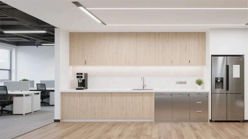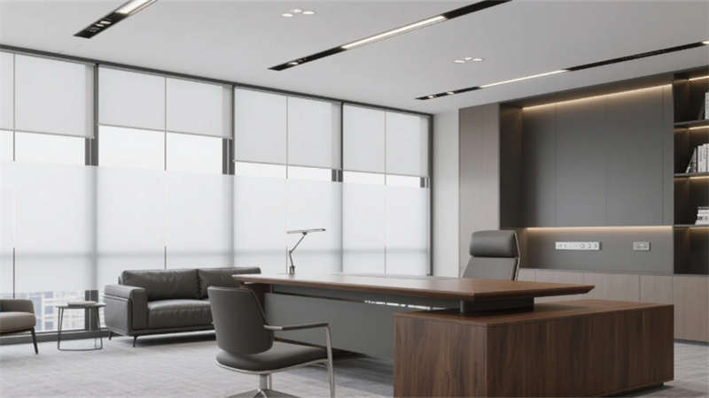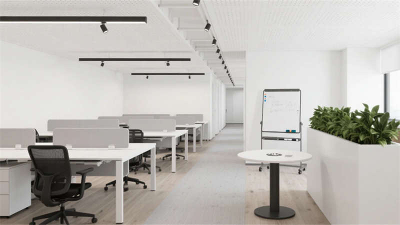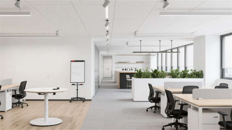室內(nèi)空間延續(xù)外立面設(shè)計(jì)語(yǔ)言,企業(yè)大堂通過(guò)技術(shù)創(chuàng)新實(shí)現(xiàn)淺白大理石與木紋墻面的無(wú)縫拼接,懸浮式線性燈光系統(tǒng)可隨自然光線智能調(diào)節(jié)色溫。開放式辦公區(qū)配置智慧化模塊組合,可升降桌體與軌道射燈靈活適配多元場(chǎng)景,協(xié)作島集成無(wú)線充電與環(huán)境感知功能。高管辦公室采用智能霧化玻璃隔斷,實(shí)現(xiàn)隱私與通透的自由切換??萍紩?huì)議室搭載高清透明顯示系統(tǒng)與多聲道聲學(xué)設(shè)備,電動(dòng)百葉簾與補(bǔ)光系統(tǒng)聯(lián)動(dòng)打造智能會(huì)議環(huán)境。