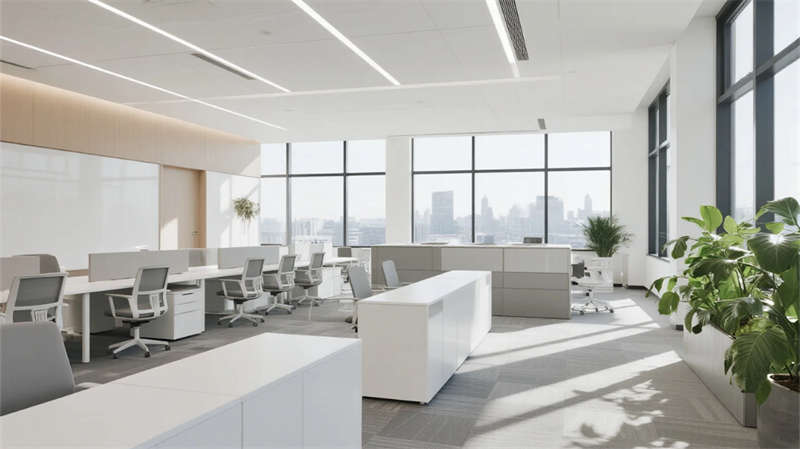這座辦公空間設計以現(xiàn)代簡約風格為核心,通過統(tǒng)一的美學語言打造出和諧而高效的空間體驗。整體采用中性色調(diào)和簡潔線條,強調(diào)自然光的最大化利用,營造出明亮通透的氛圍。功能區(qū)布局注重流暢性,從接待區(qū)的開放迎賓到開放式辦公區(qū)的協(xié)作精神,再到會議室的專業(yè)嚴謹,每個空間都融入了綠植點綴,增添生機感。休閑休息區(qū)提供舒適放松的角落,獨立辦公室則平衡了隱私與專注,茶水間和衛(wèi)生間延續(xù)了簡約實用的設計原則,多功能室支持靈活多變的活動需求。設計亮點在于對生態(tài)元素的融合,如大量綠植和自然光,提升了環(huán)境品質(zhì),同時現(xiàn)代家具和材質(zhì)選擇強化了簡約美學,確保功能與美感的統(tǒng)一。該項目體現(xiàn)了對辦公環(huán)境的革新思考,致力于創(chuàng)造一個既高效又宜居的空間,成為城市辦公新標桿。