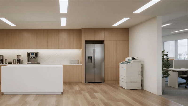 內(nèi)部空間延續(xù)外部的純凈氣質(zhì)。企業(yè)大堂以淺白色大理石地面與溫潤(rùn)木紋墻面奠定基調(diào),弧形純白前臺(tái)點(diǎn)綴深藍(lán)企業(yè)標(biāo)識(shí),懸浮線性燈光延伸視覺(jué)。右側(cè)等候區(qū)模塊化沙發(fā)與綠植盆景營(yíng)造舒適氛圍,左側(cè)數(shù)字影像墻動(dòng)態(tài)展示企業(yè)風(fēng)采,淺灰肌理漆背景墻在隱藏?zé)魩в骋r下更顯質(zhì)感。開(kāi)放式辦公區(qū)強(qiáng)調(diào)高效與靈活,白色穿孔吸音天花下,淺灰可升降桌與黑色人體工學(xué)椅組合排列,協(xié)作島與窗邊高吧臺(tái)滿足多元需求,淺木紋PVC地面增添自然暖意。高管辦公室運(yùn)用灰玻隔斷與電動(dòng)霧化膜保障私密,胡桃木辦公桌、深灰皮質(zhì)沙發(fā)與嵌入式書(shū)柜彰顯沉穩(wěn),無(wú)主燈設(shè)計(jì)營(yíng)造專(zhuān)注氛圍。公共支持區(qū)模塊化吧臺(tái)、淺木紋儲(chǔ)物柜與智能文件柜集成高效服務(wù),細(xì)節(jié)處的綠植點(diǎn)綴延續(xù)生態(tài)關(guān)懷。整體設(shè)計(jì)從外至內(nèi),以統(tǒng)一的色調(diào)、考究的材質(zhì)與智能化細(xì)節(jié),塑造出體現(xiàn)合肥創(chuàng)新精神的智慧辦公新標(biāo)桿。