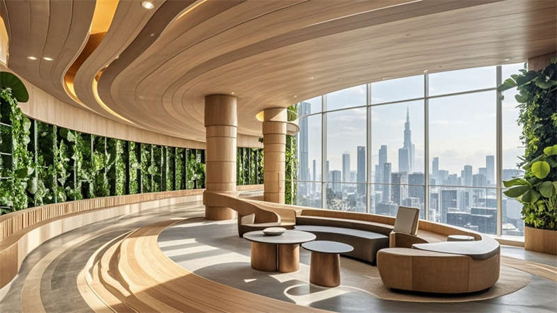 本1500㎡現(xiàn)代簡約辦公室設(shè)計(jì)以'高效協(xié)作·人文關(guān)懷'為核心,采用模塊化空間布局提升使用彈性。主色調(diào)選用淺灰、白、木三色系,局部點(diǎn)綴企業(yè)深藍(lán)色強(qiáng)化品牌認(rèn)知。開放式辦公區(qū)采用1.2m×1.8m標(biāo)準(zhǔn)工位模塊,通過玻璃隔斷實(shí)現(xiàn)90%自然光滲透率。智能照明系統(tǒng)根據(jù)日照強(qiáng)度自動(dòng)調(diào)節(jié)色溫,全年節(jié)電率達(dá)35%。核心筒改造區(qū)運(yùn)用曲面木飾面弱化建筑結(jié)構(gòu),形成自然交流節(jié)點(diǎn)。聲學(xué)設(shè)計(jì)方面,蜂窩吸音板(NRC 0.85)與隔音艙(STC 52)組合控制噪音污染。茶水區(qū)采用磁吸軌道插座系統(tǒng),支持設(shè)備靈活接入。所有家具均符合WELL建筑標(biāo)準(zhǔn),辦公椅配備6向調(diào)節(jié)功能。通過BIM技術(shù)實(shí)現(xiàn)管線綜合,保留3.2米凈高營造開闊感。