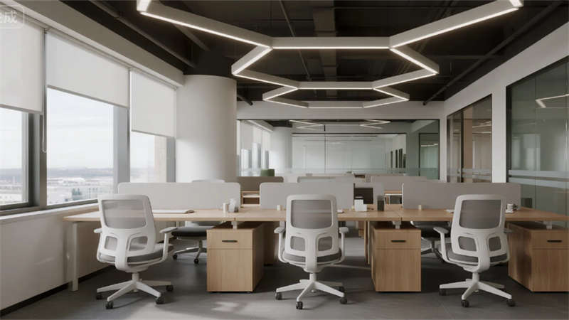 生產(chǎn)空間聚焦高效與潔凈,智能機(jī)械臂單元與模塊化管線系統(tǒng)滿足精密材料制造需求,冷色調(diào)照明強(qiáng)化科技嚴(yán)謹(jǐn)感。研發(fā)區(qū)域突破傳統(tǒng)廠房格局,落地窗引入自然光與園區(qū)景觀,垂直綠墻凈化空氣的同時(shí)激發(fā)創(chuàng)造力。