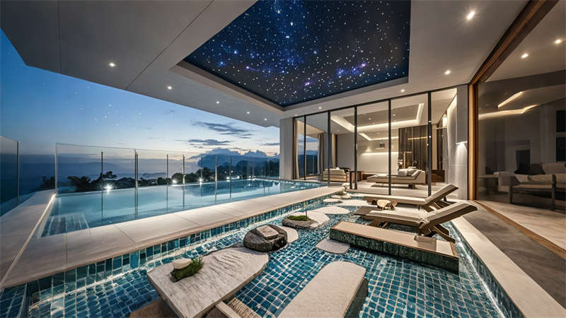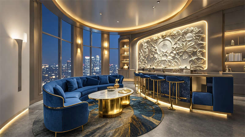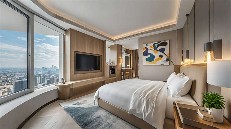 本案為6000平現(xiàn)代輕奢風格商務(wù)酒店,以 ' 城市綠洲 ' 為設(shè)計理念,將自然元素與科技美學融合??臻g規(guī)劃采用動靜分區(qū)原則,1-3 層為公共接待區(qū),4-8 層設(shè)置標準客房,9-10 層規(guī)劃行政專屬空間。色彩體系以香檳金、深海藍、暖灰為主調(diào),搭配天然木紋與石材肌理,營造低調(diào)奢華的氛圍。智能系統(tǒng)貫穿全樓,包含環(huán)境光感調(diào)節(jié)、聲學優(yōu)化及空氣質(zhì)量管理。特色設(shè)計包括大堂三維立體藝術(shù)墻、客房可變光環(huán)境系統(tǒng)、頂層無邊際星空泳池,以及模塊化多功能會議系統(tǒng),充分滿足商務(wù)客群對品質(zhì)與效率的雙重需求。