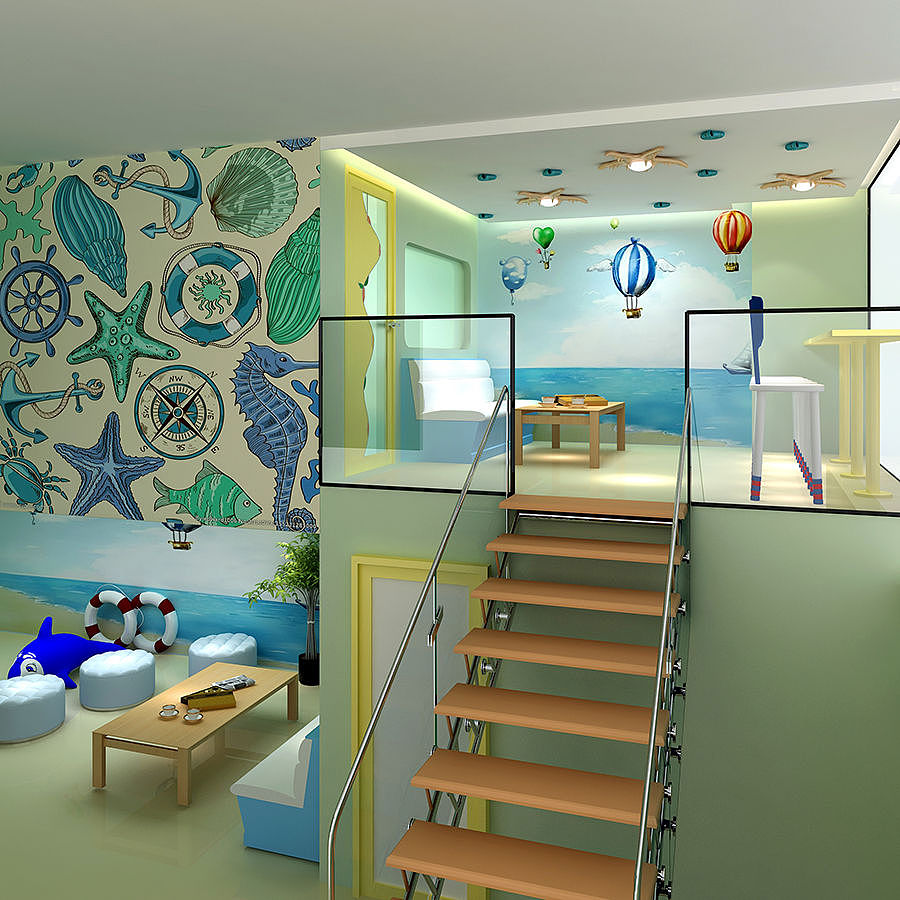 該設(shè)計以海洋樂園為主題,整體設(shè)計,顏色繽紛艷麗,造型充滿童趣,讓大人和孩子都樂在其中.每個空間又都有他不同的味道,但最終都和親子這個元素相呼應(yīng),親子,海洋,樂園,這幾種元素融合在一起,一定是一個美妙的兒童天堂.