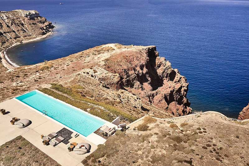 自然生態(tài)度假酒店坐落在圣托里尼島新月形狀的懸崖邊上,預計于今年5月初開放。在阿克羅蒂里古城附近,游客可以看到來自破火山口附近的碧藍海水和斑斕陡峭的熔巖層。這片建筑所帶來的與人類密切相關的體驗,進一步點亮了周邊未經雕琢的自然世界。復古飾品、大地色調和手工家具裝點了酒店的15間套房,筆直的線條、圣潔的白色與靈活的曲線等典型的圣托里尼建筑元素也在酒店中得以充分展現。在這里,人們可以盡享奢華的希臘式住宿,品嘗當地精致菜肴,感受棲于懸崖邊的全景泳池,在戶外社交中心參加各種有益身心的活動。
