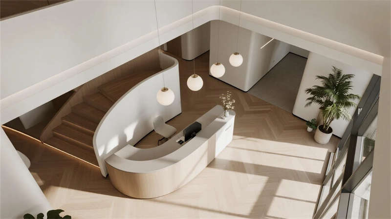 在現(xiàn)代簡約風(fēng)格的引領(lǐng)下,該辦公空間以開放性和人文關(guān)懷為核心,打造了一個(gè)流暢而高效的日常工作環(huán)境。整體設(shè)計(jì)強(qiáng)調(diào)視覺統(tǒng)一性,通過淺色調(diào)的墻面與地板、簡潔的家具線條以及自然元素的融入,營造出寧靜而專業(yè)的氛圍。功能區(qū)之間無縫銜接,例如協(xié)作區(qū)與開放式辦公區(qū)通過綠植和智能燈光形成自然過渡,確保團(tuán)隊(duì)互動(dòng)的同時(shí)兼顧個(gè)人專注需求。休息茶水區(qū)則以溫馨的布局促進(jìn)員工放松,而創(chuàng)意工坊區(qū)則激發(fā)創(chuàng)新思維,多功能活動(dòng)區(qū)則支持多樣化的工作模式。